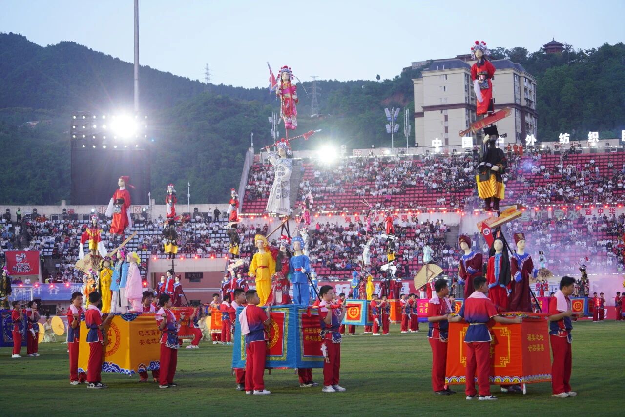 赛前,大型开场舞《锦绣盛世》震撼登场,分为《族迹·賨人谷续》《安逸·民乐华章》《盛世·锦绣天府》三大篇章。200名演员手持战旗,复刻磅礴的賨人群像,尽显古賨国的豪迈风骨;300名“黄花仙女”翩跹起舞,将渠县的千年风雅与好客初心凝聚于舞台。